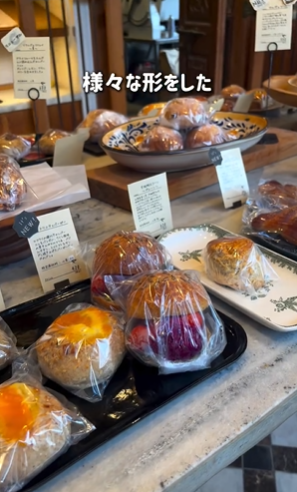 こちらのパン屋さんはここにしかない生地と食材の組み合わせがたくさんあって、様々な形をしています。