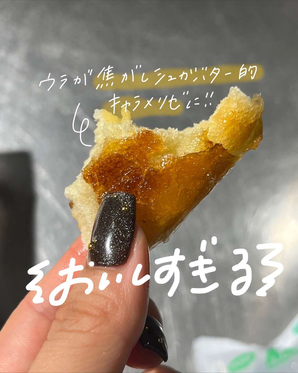 塩気もしっかりめであまじょっぱいし、裏の焦げたシュガーバターがもう背徳の味!