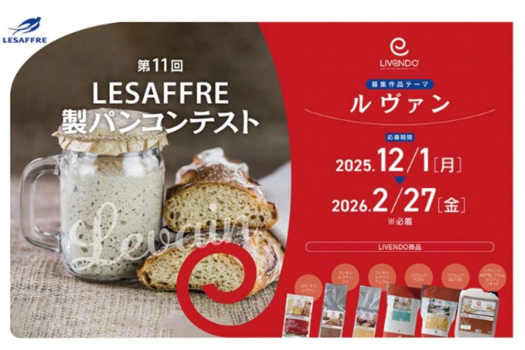 今回はルサッフル社のサワードゥ製品「LIVENDO(リヴェンド)」シリーズを指定材料とし、「バゲット部門」「フィユタージュ部門」「発酵菓子部門」の3部門で作品を募集します。