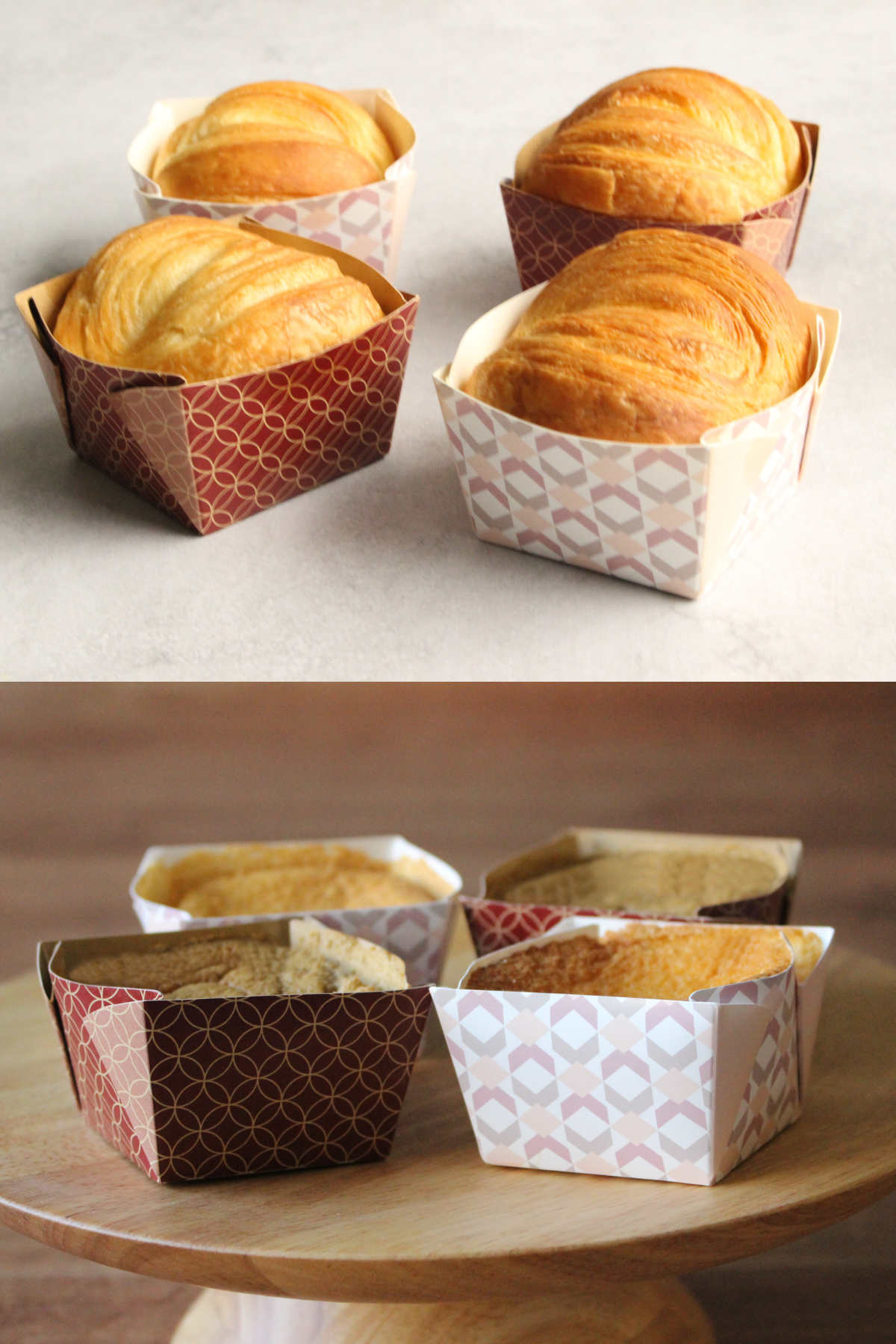 焼成可能な紙製トレーから、新サイズのトレーが登場!ワンウェイトレーのため、オペレーションの効率化にも貢献します。和洋どちらのお菓子にもなじむレトロなデザインが特長で様々なメニューにお使いいただける、実用性と華やかさを兼ね備えたトレーです。