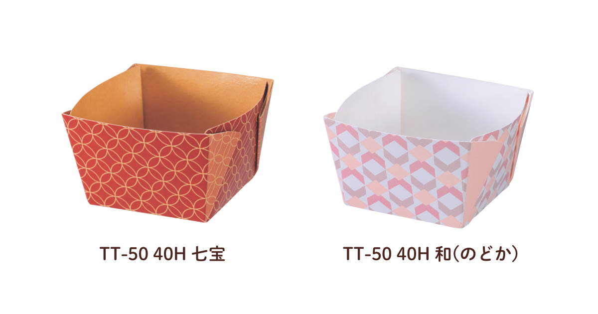 「TT-50 40H 七宝/和(のどか)」は、パンや焼き菓子など、和洋を問わず多様なメニューに対応可能。おつまみやおやつ需要に応える、ちょうどいいサイズ感とレトロ可愛いデザインで、思わず手に取りたくなるプラスワンメニューにいかがでしょうか。