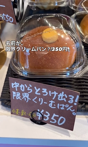限界クリームパン 350円。