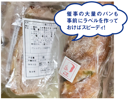ピータッチでロゴやメッセージの入ったシールを貼ることで、袋越しでも「どんなお店のパンか」が伝わるようになる。